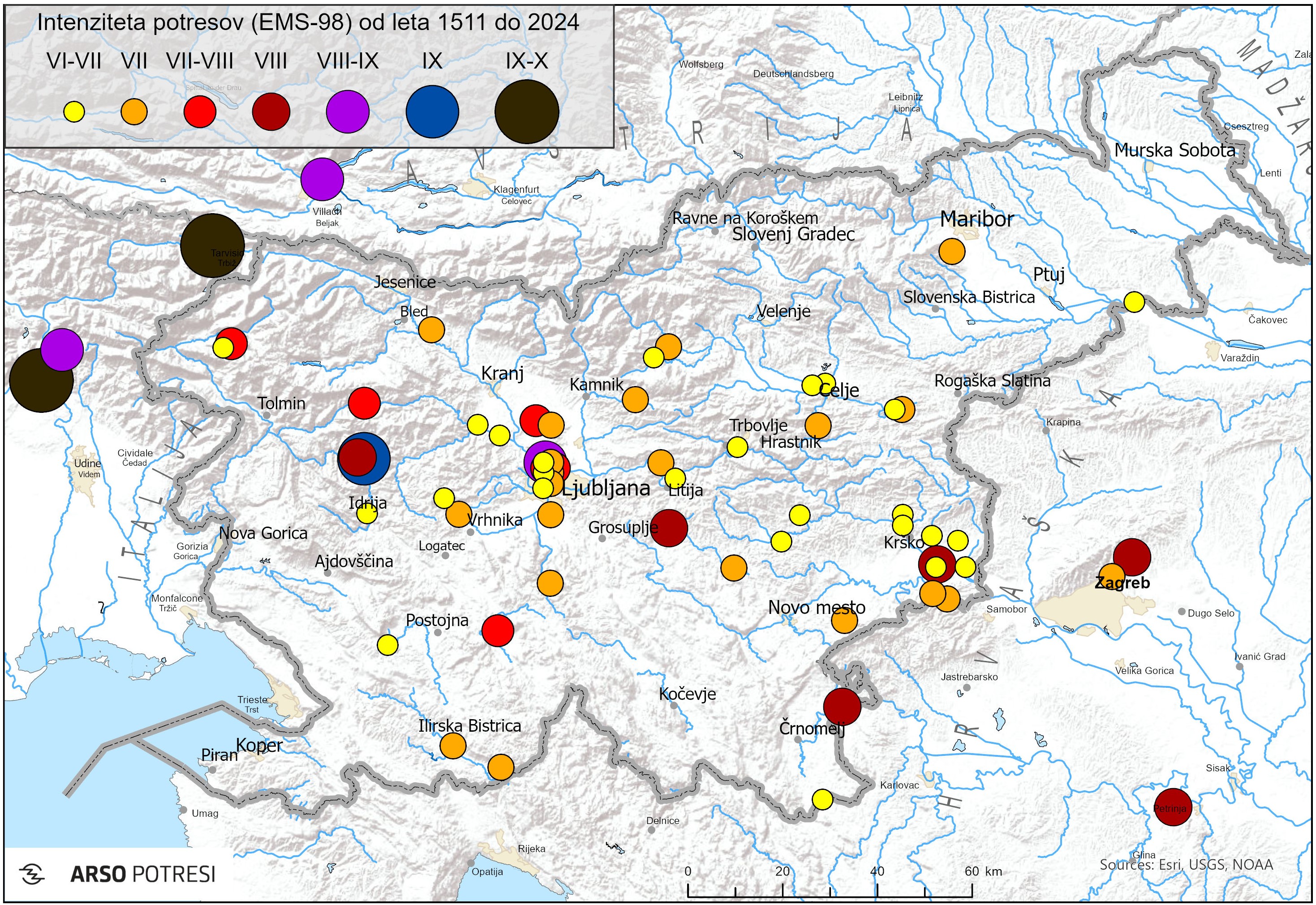 kot so vrednosti, podane v preglednici, toda za potrebe vrednotenja potresne ogroženosti v Sloveniji smo se omejili na največje učinke znotraj državnih meja.