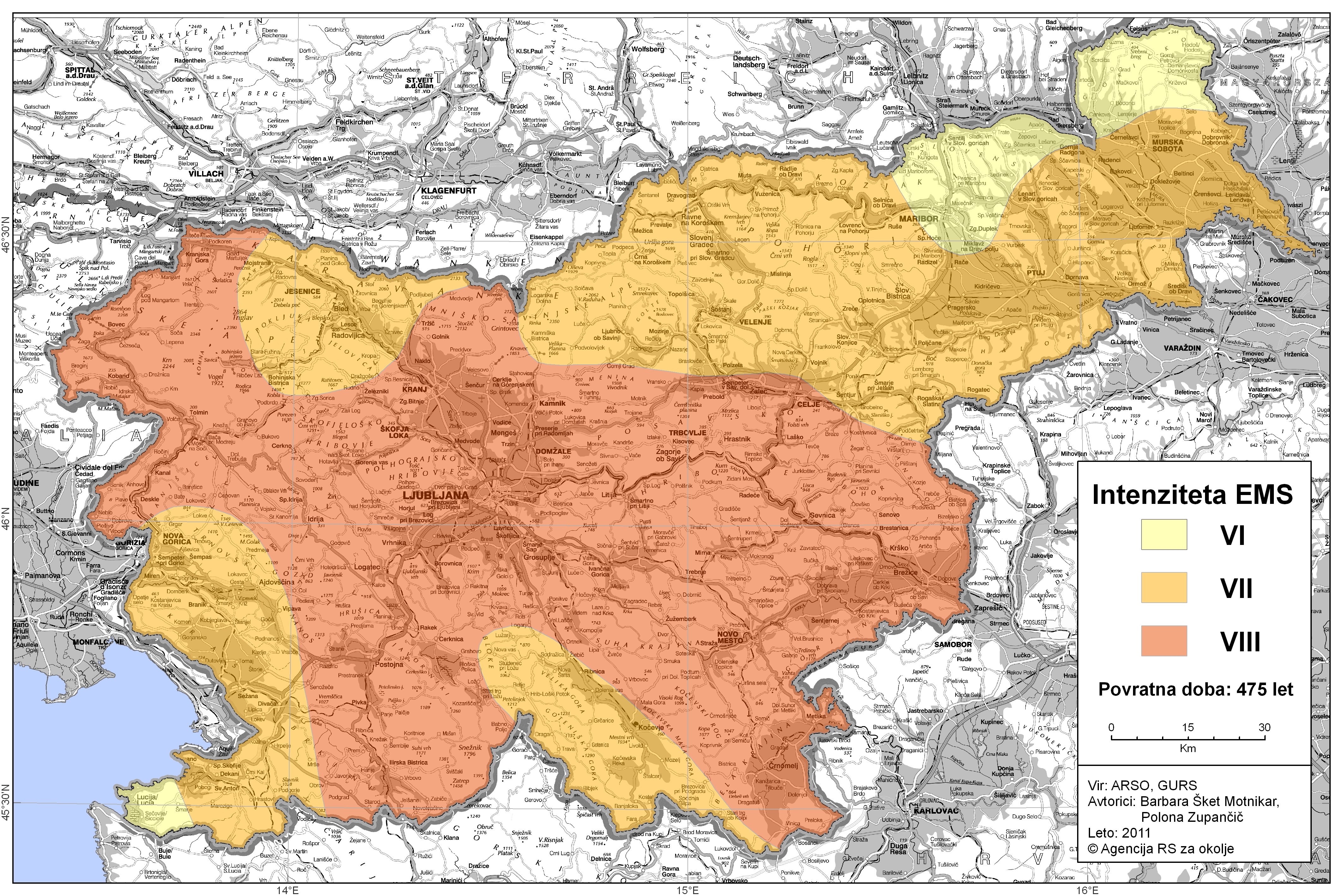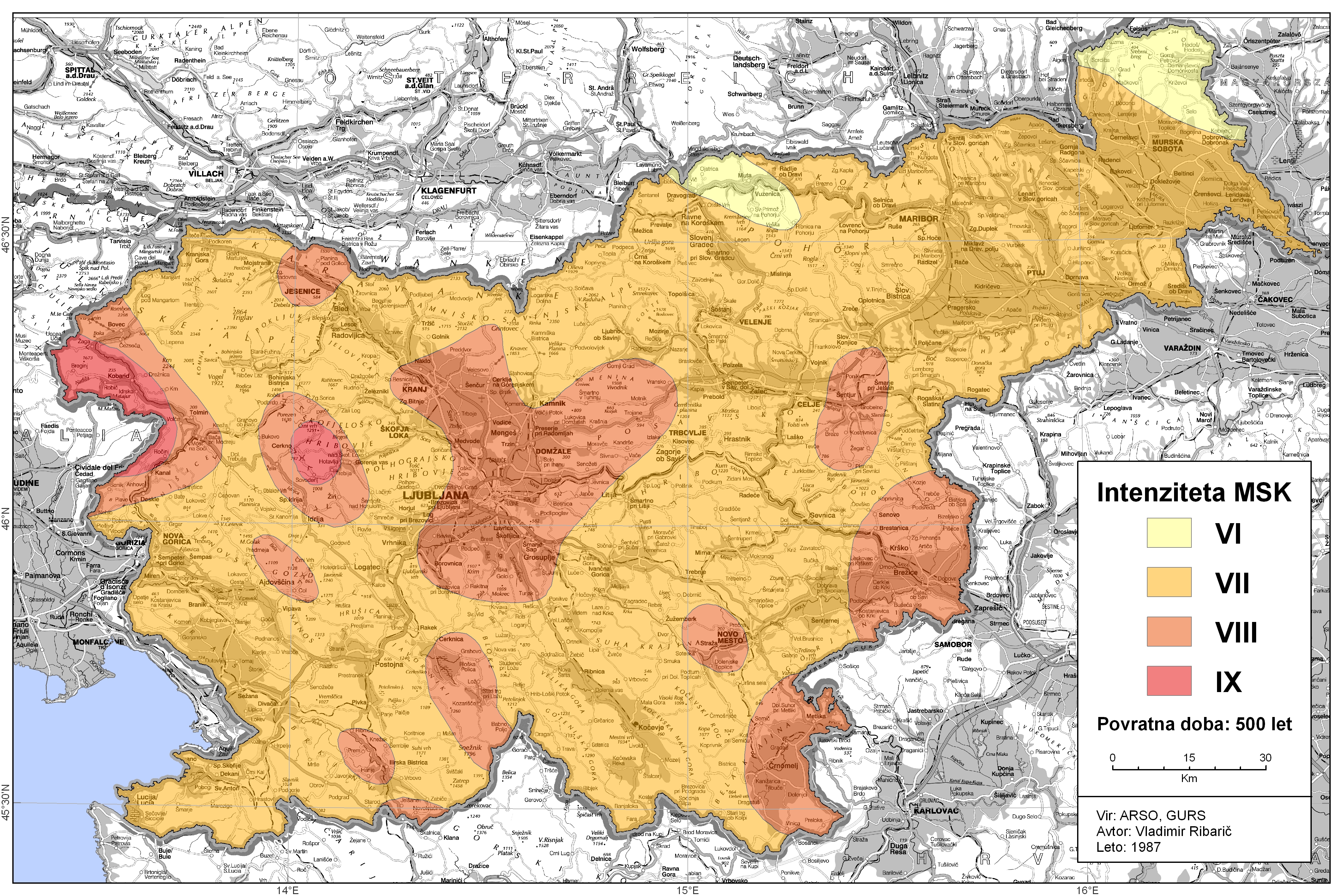 Uradna karta potresne nevarnosti Slovenije